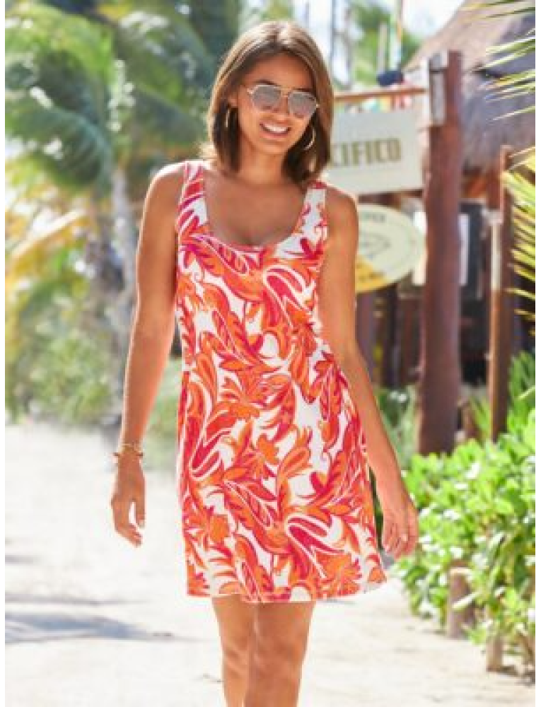 Loop Terry Printed Scoop Neck Tank Dress Orange Multi