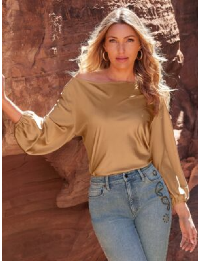 Abby Boat Neck Long Sleeve Charmeuse Blouse Champagne