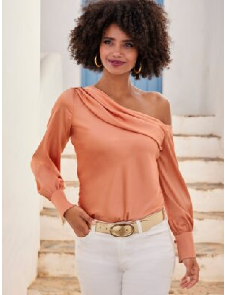 Amelia Shoulder Skimming Charmeuse Blouse Peach