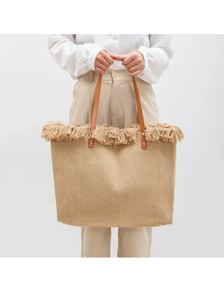 Mocoer Large Capacity Solid Color Tassel Canvas Tote Shoulder Bag