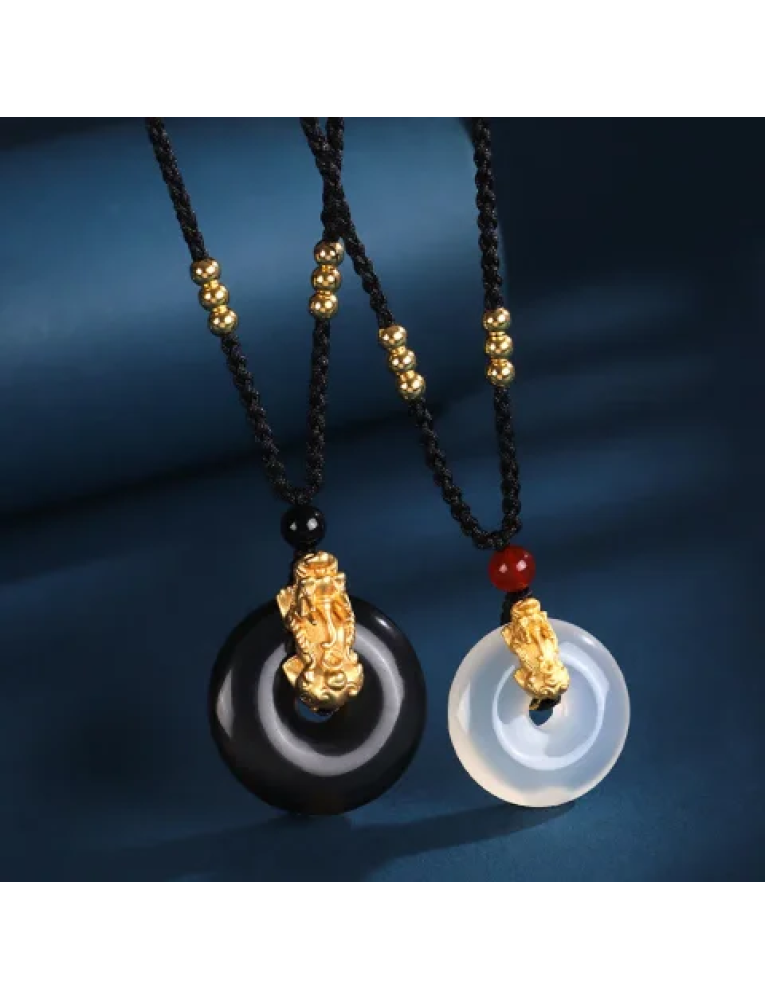 Mocoer Black Onyx White Agate Peace Buckle 999 Sterling Silver Gold PiXiu Fortune Necklace Pendant