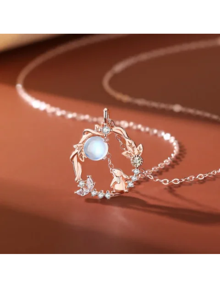 Mocoer 925 Sterling Silver Year of the Rabbit Moonstone Moon Flower Pattern Necklace Pendant Bracelet Earrings