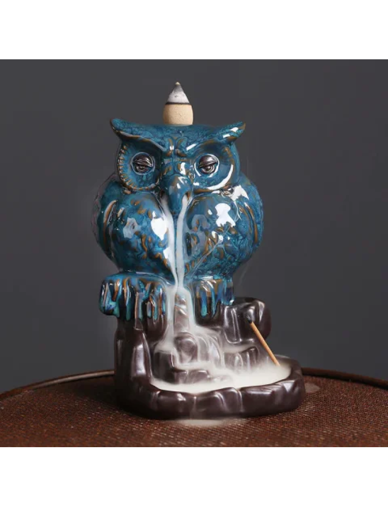 Mocoer Cute Owl Ceramic Backflow Smoke Fountain Meditation Healing Incense Burner Decoration