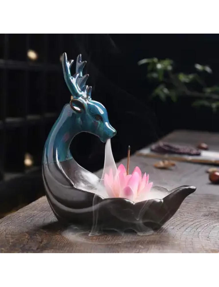 Mocoer Little Deer Ceramic Lotus Meditation Incense Burner Decoration