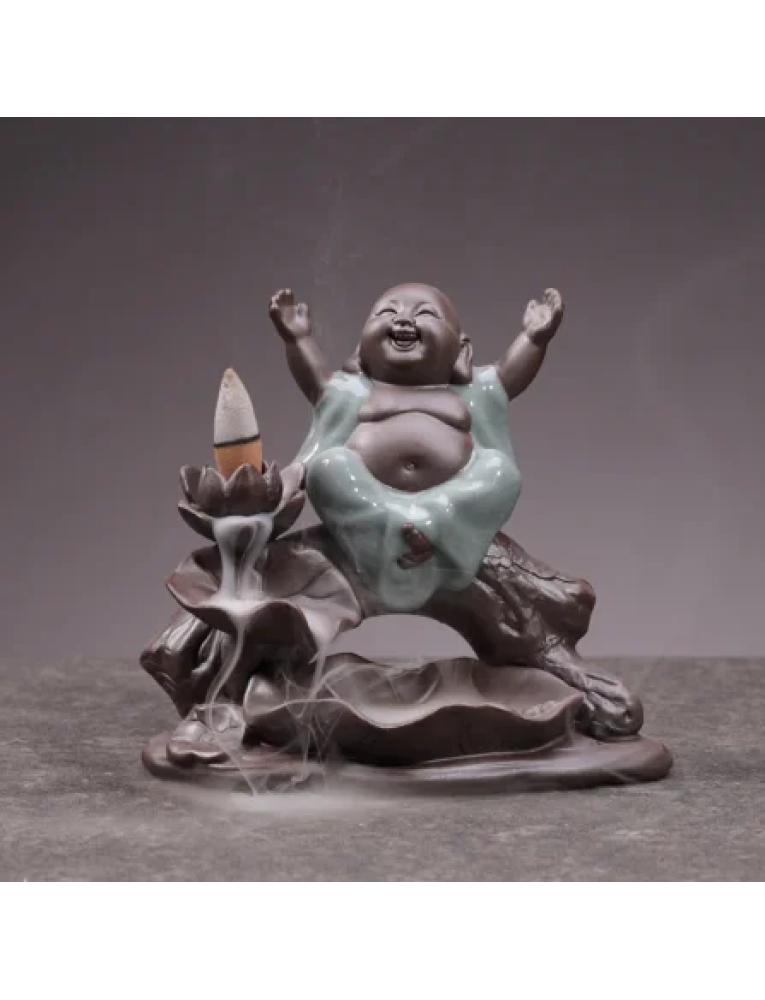 Mocoer Little Monk Ceramic Lotus Blessing Incense Burner Decoration